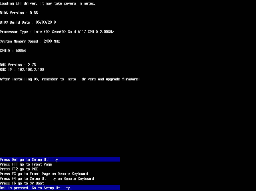 - 在重启过程中,当出现如图10-16所示界面时,按“Delete”或“F4”。