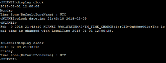 <HUAWEI>clock datetime 12:00:00 2018-01-01