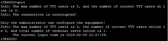 [*CE6800]header shell information “Only the administrator can configure the equipment!”