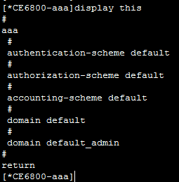 配置完成后查看结果,其中aaa认证模式无特殊要求,均采用默认模式