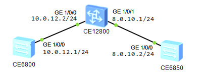 在CE6850上添加去往10.0.12.0/24的静态路由,下一跳地址应为CE12800上的8.0.10.1
