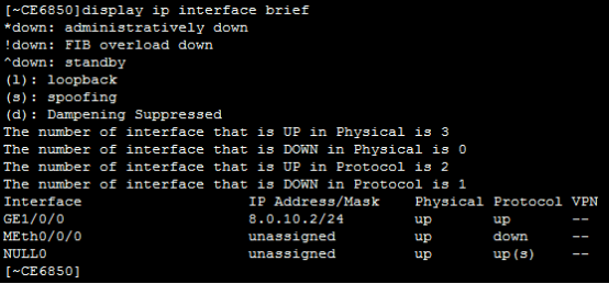 [*CE6800]interface GE 1/0/0 进入接口配置模式