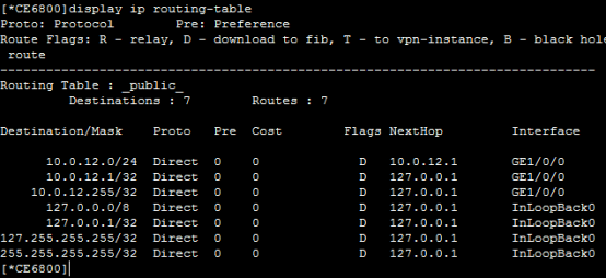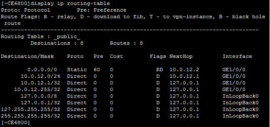 [~CE6800]ip route-static 0.0.0.0 0.0.0.0 10.0.12.2