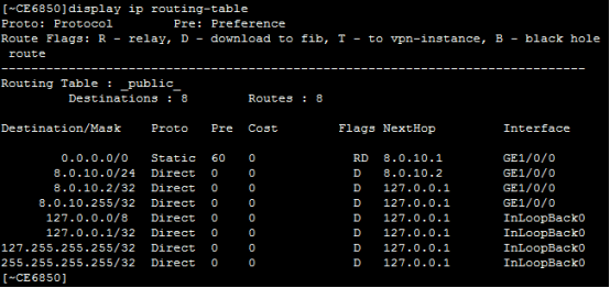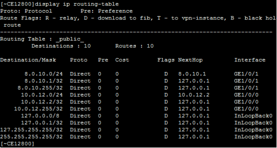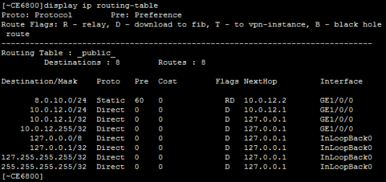 [*CE6800]ip route-static 8.0.10.0 24 10.0.12.2