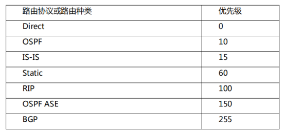 华为路由器默认协议优先级如下表