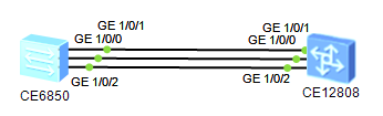 CE6850的GE1/0/1~GE1/0/3分别直连对端CE12808的GE1/0/1~GE1/0/3,将三条链路做链路聚合(channel);