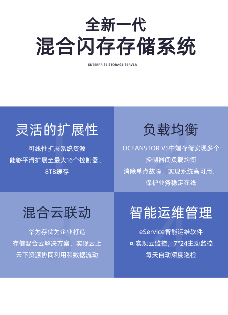 通过eService实现存储设计、部署、运维全生命周期智能管理,并通过混合云方案等助力企业云化转型。