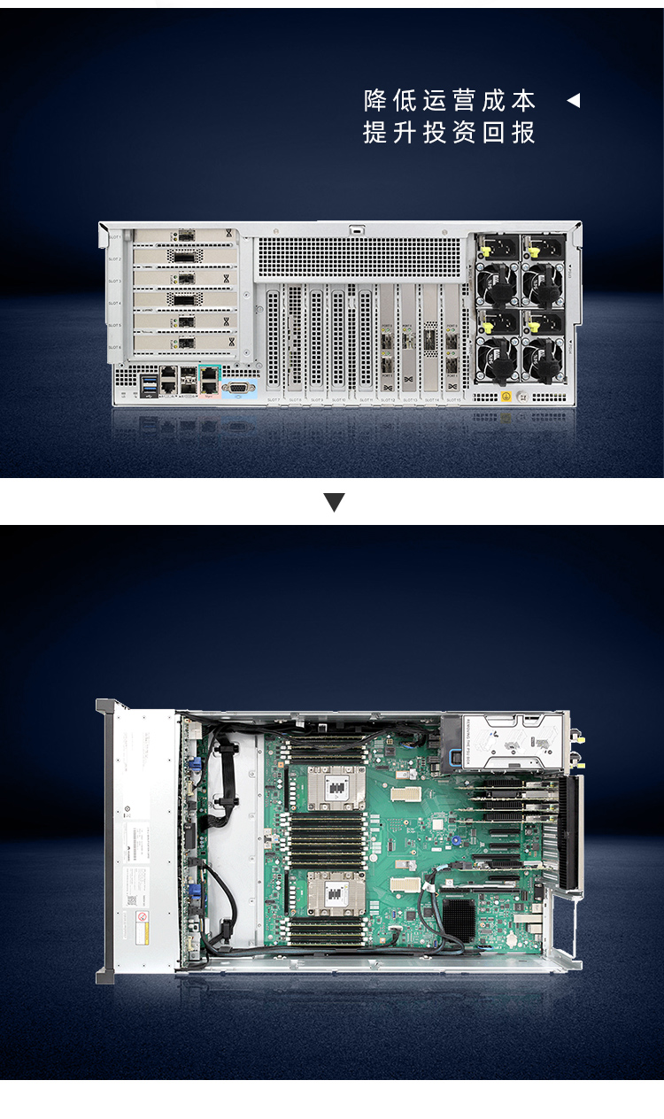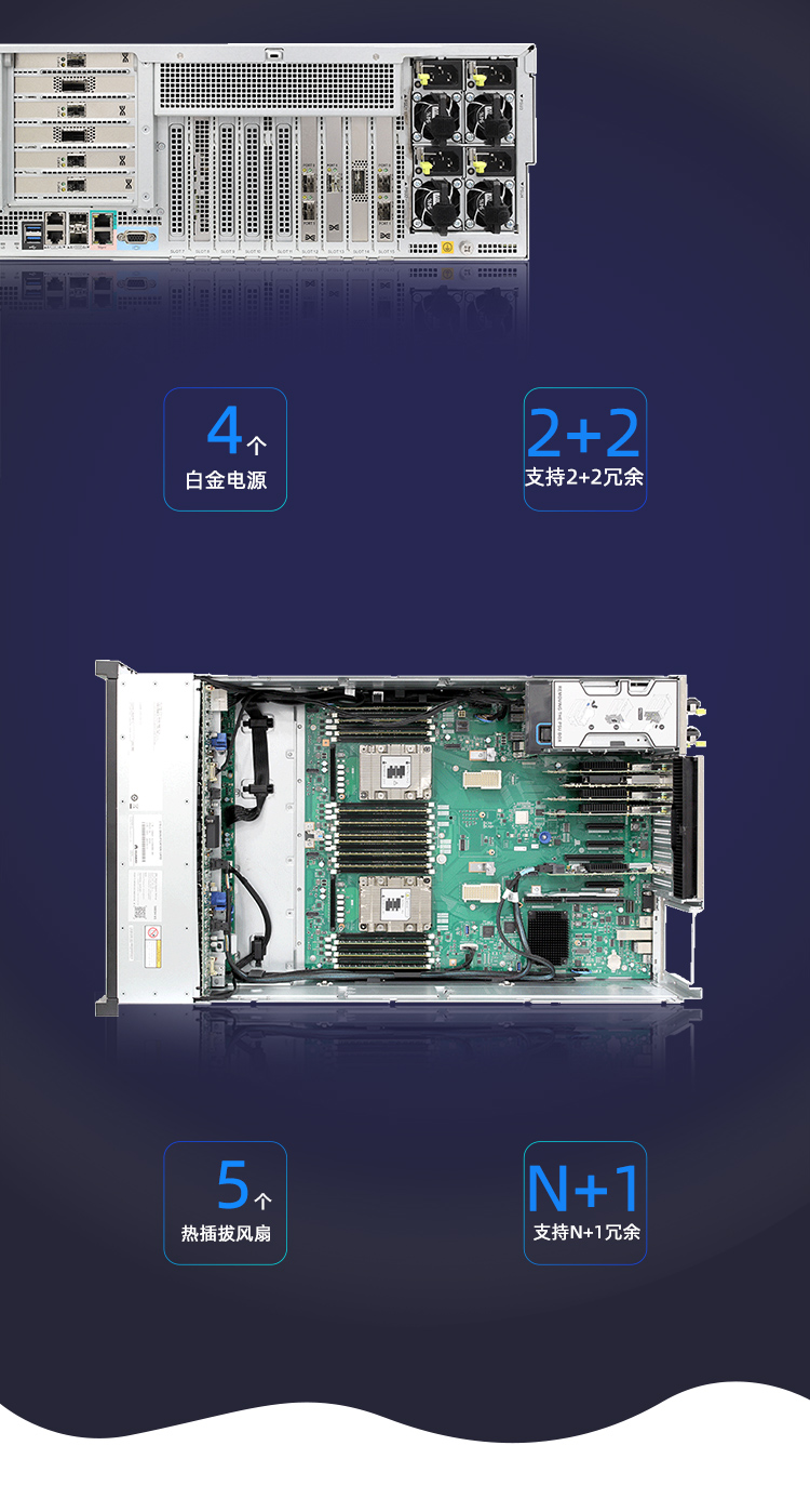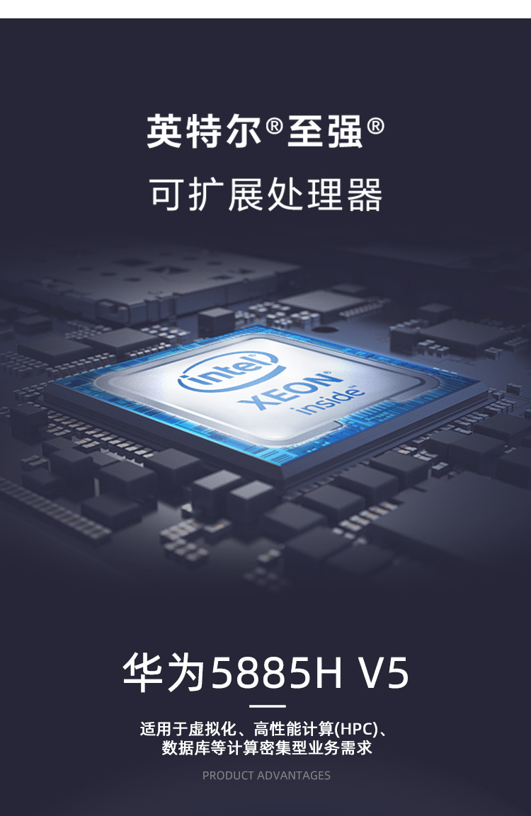 华为FusionServer Pro 5885H V5是一款4U4路机架服务器,适用于关键业务的高可靠高性能要求,以及虚拟化、高性能计算(HPC)、数据库等计算密集型业务需求。5885H V5在4U空间里可配置4路处理器、48条DDR4内存及最多25*2.5”的本地存储资源(可配置8个NVMe SSD)。集成DEMT智能功耗管理、FDM智能故障管理等专利技术,可选配华为FusionDirector全生命周期管理软件,能够有效降低运营成本、提升投资回报。