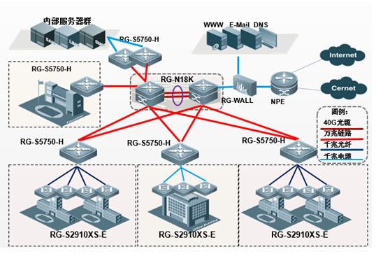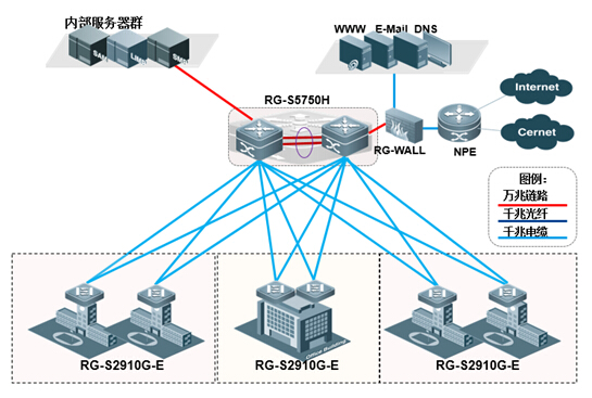 RG-S5750-H系列交换机作为大型园区网的汇聚层交换机,实现万兆汇聚到核心的高性能带宽链路,为接入设备提供更高的带宽,满足接入用户信息量日益增长的需要。