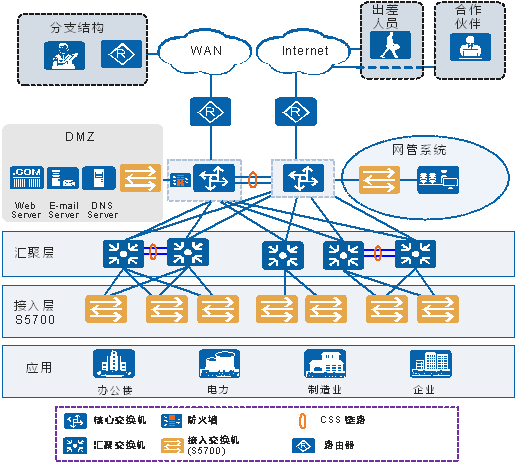 S5730SI可以部署在企业园区网络的汇聚层,为用户组建高性能,融合多业务,高可靠的企业网络。