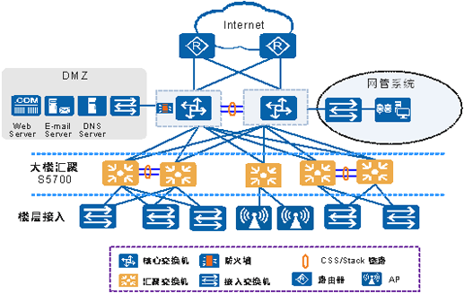 除在中大型企业园区作为接入及汇聚设备使用之外,S5730SI凭借自身强大的汇聚和路由能力,也可作为核心交换机用于中小型网络中。