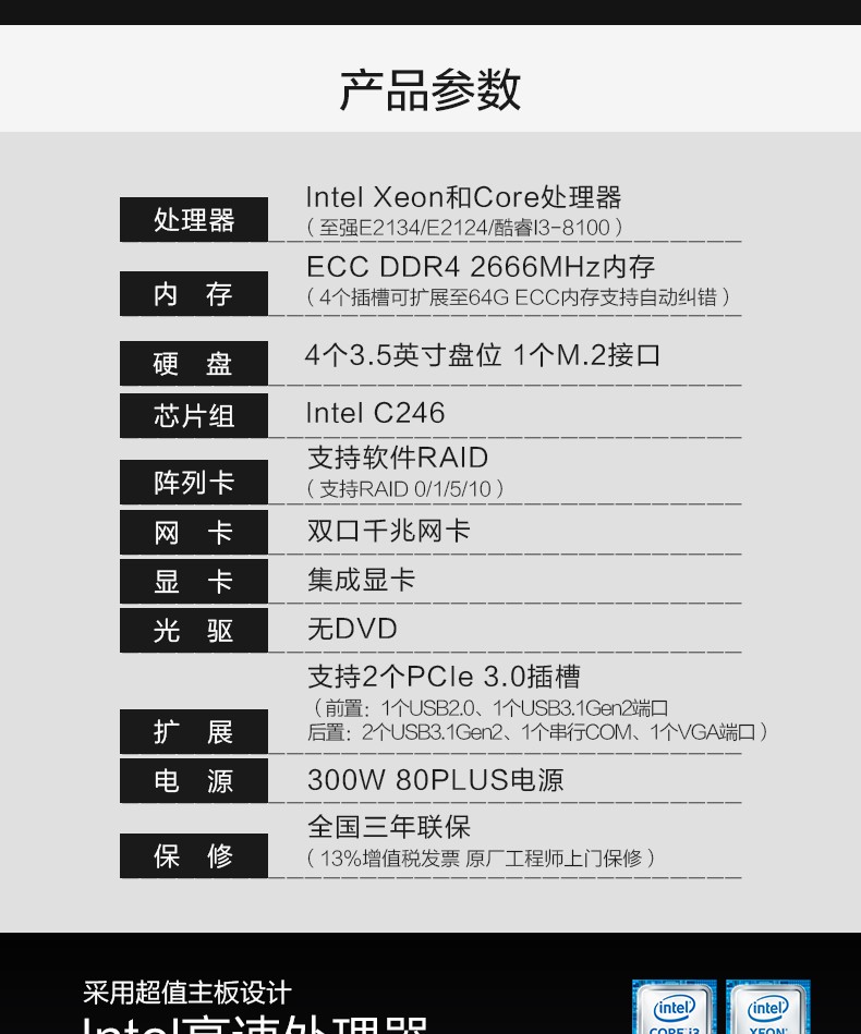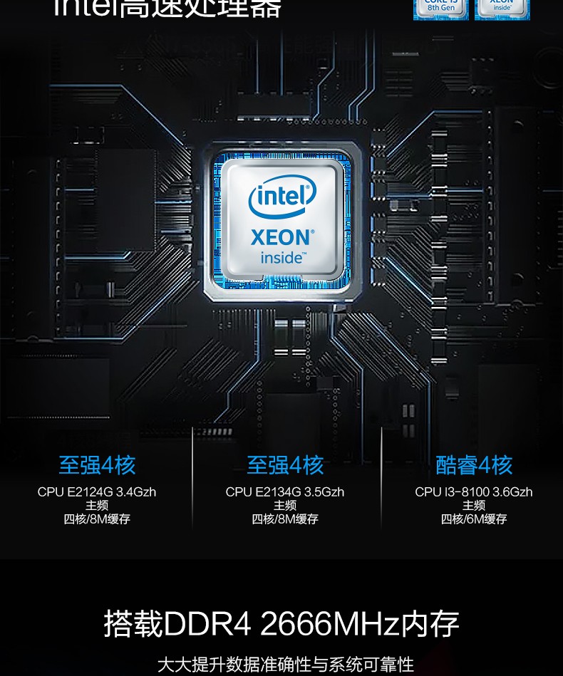 本服务器专为支持新一代的英特尔.至强E-2100处理器而设计,并配有四个UDIMM插槽, 多可安装64GB的2666MHz TruDDR4内存 , 是IT管理员的可靠选择。两个PCle插槽和两个lGbE嵌入式共享LAN 1/0端口为整个数据中心提供了快速网络连接。此外,SR158还支持预加载服务器操作系统以及桌面CPU。