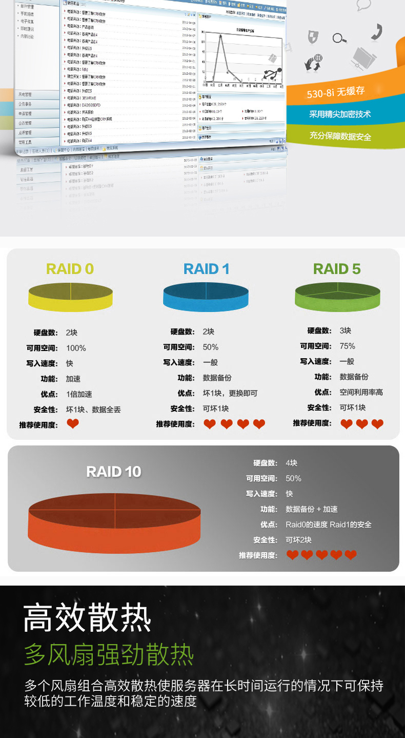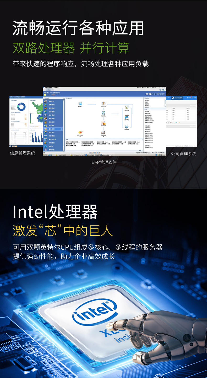 SR588 提供众多可提高性能和灵活性的功能。它搭载两个第二代英特尔至强可扩展处理器铂金系列,与上ー代产品相比,内核増加43%,内存速度高达2933MHz,可实现更高的I/O和存儲容量。配备易插拔硬盘的软件和硬件RAID可轻松管理存儲需求。